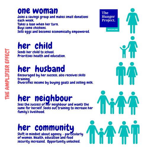 The Hunger Project focuses on empowing women in our communities because we know that an empowered woman will create the change that is required to end generational hunger and poverty. There is a multiplier effect in place you empower a woman that leads to community change.
